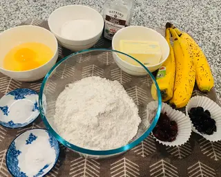 2.Làm nóng lò nướng trước 10’ ở nhiệt độ 177 độ c (350 độ f).Chuẩn bị khuôn để nướng bánh (bếp dùng khuôn làm muffins và khuôn làm bánh mì size nhỏ)
