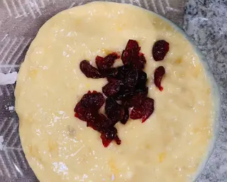 6.Còn cherry khô và nam việt quất có thể trộn chung với hỗn hợp bột luôn cũng được. Riêng bếp đã chia hỗn hợp bột làm 3 phần(cherry, nam việt quất, chuối).