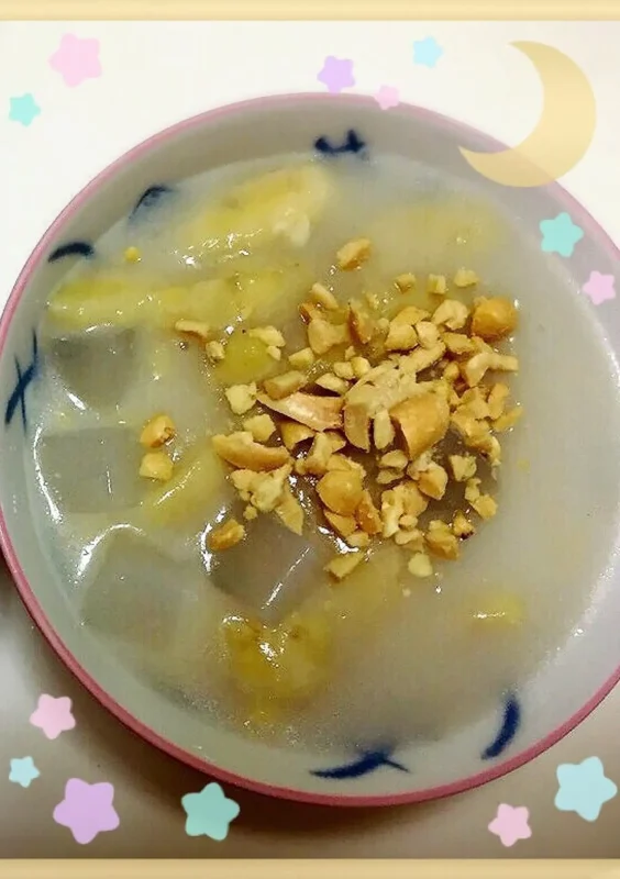 5.Bạn lấy vào từng chén. nóng hay lạnh tuỳ sở thích mỗi người. Nhưng mình thì mình cảm thấy ngọt ngọt lạnh lạnh vào mùa hè này chắc thích hợp hơn. khi bạn lấy từ tủ lạnh ra nó sẽ sánh hơn nữa. rùi bạn cho lạc vào! Mong mọi người ngon miệng nhé! ^^