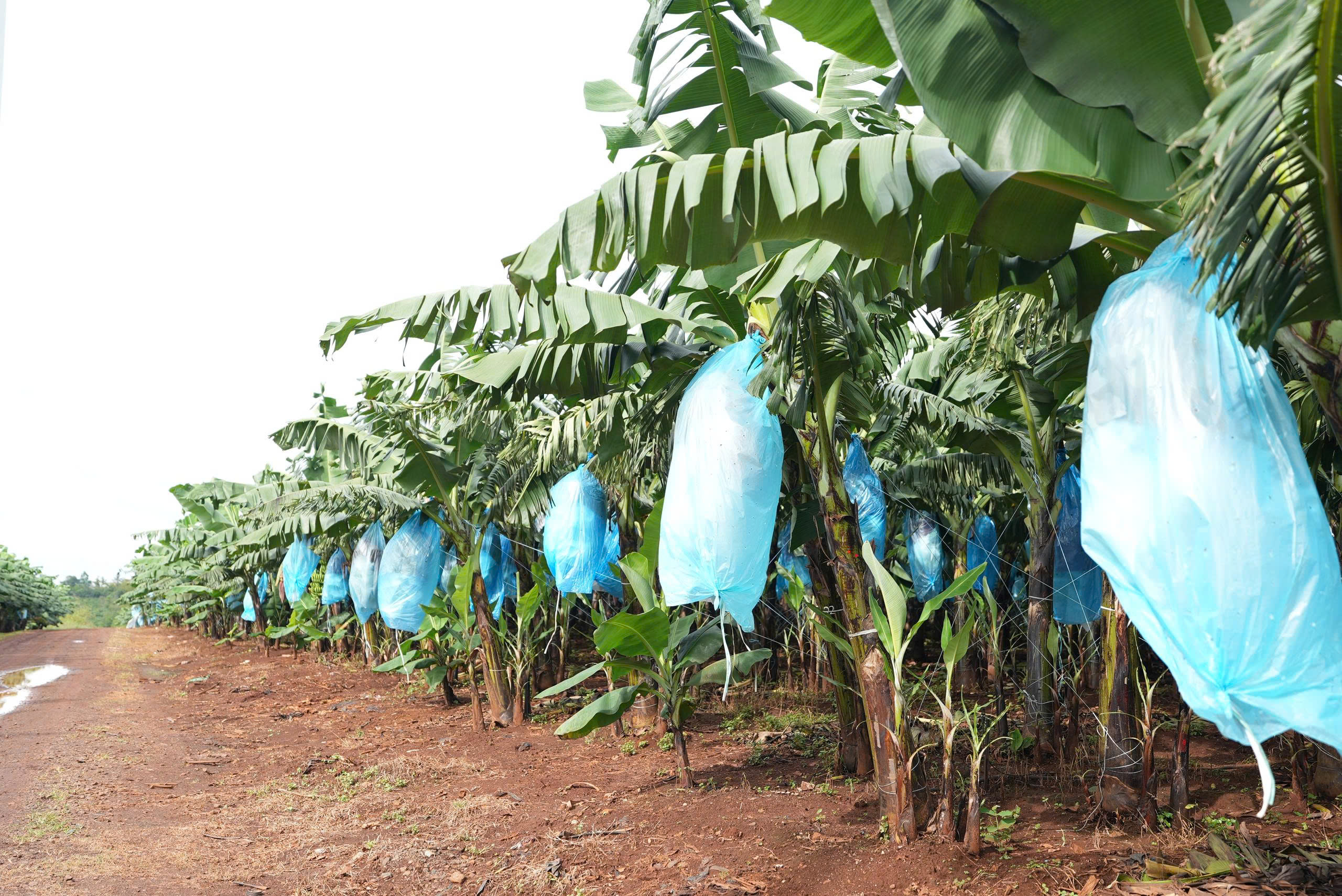 Khi buồng chuối bắt đầu hình thành, mỗi nải đều được bao phủ bằng túi chuyên dụng nhằm bảo vệ khỏi côn trùng, gió mạnh và tác động vật lý từ lá cây.